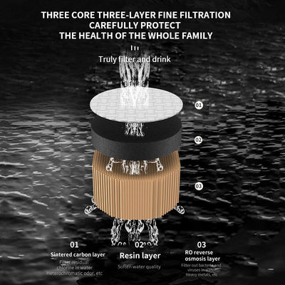 ৩.আরও ফিল্টার: এই স্তরটি বিপরীত অস্মোসিস সিস্টেমের মূল উপাদান। এটি ০.০০০১ মাইক্রন পাতলা ফিল্ম কম্পোজিট ঝিল্লি ব্যবহার করে।এই অর্ধ-পরিবাহী ঝিল্লি কার্যকরভাবে TDS-মোট দ্রবীভূত কঠিন পদার্থ 99% পর্যন্ত অপসারণ করবে, লবণ, ভারী ধাতু যেমন আর্সেনিক, তামা, নাইট্রেট এবং সীসা, পাশাপাশি ব্যাকটেরিয়া এবং সিস্ট, যেমন ই.কোলি, জিয়ার্ডিয়া এবং ক্রিপ্টোস্পোরিডিয়াম।